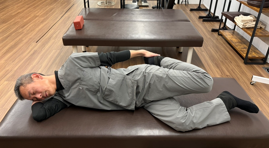 このストレッチは腰椎をしなやかに保ち、腰の負担を軽減します。