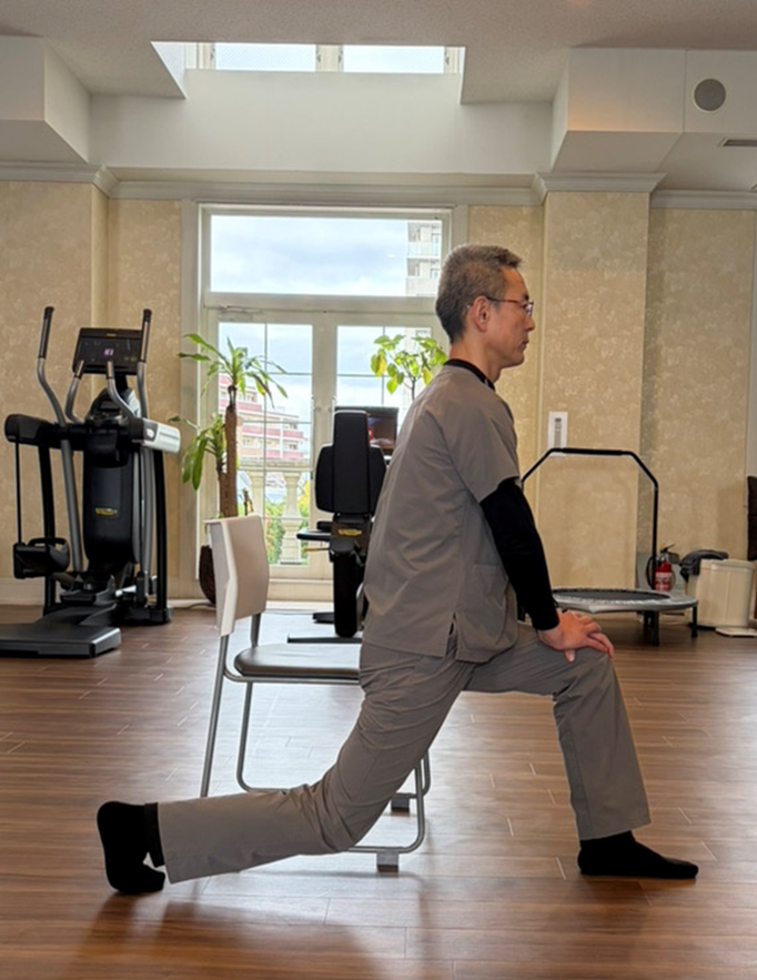 腸腰筋とは体幹と下肢を繋いでいる筋肉です。そのストレッチは腰を反るものが多いですが、すべり症の方は腰を反る動作がNGです。