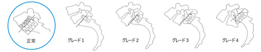腰椎すべり症は、下位椎体のすべりの度合いにより、4グレードに分類されています。