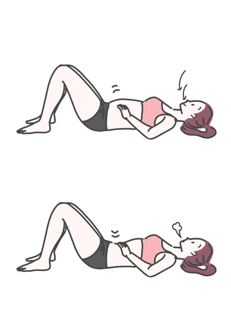 また、お腹を凹ませた状態(腹横筋)をキープし、背骨を安定させるドローインも効果的です。