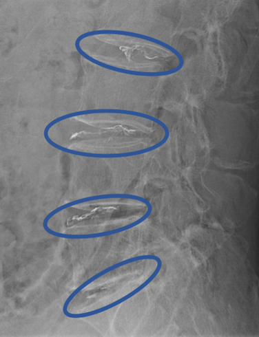7-8年前から両足底のしびれ。ゴルフや悪い姿勢、腰を右に傾けると増悪。他院で2021年11月より投薬継続しているが改善無し。2020年に他院でPLDDの治療歴あるが症状の改善無し。