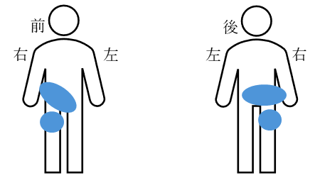 主な痛みの部分-両側腰部、右股関節、両側臀部