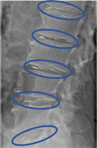 患者様と相談の元、 L1/2、2/3、3/4、4/5、5/S にセルゲル法を施行