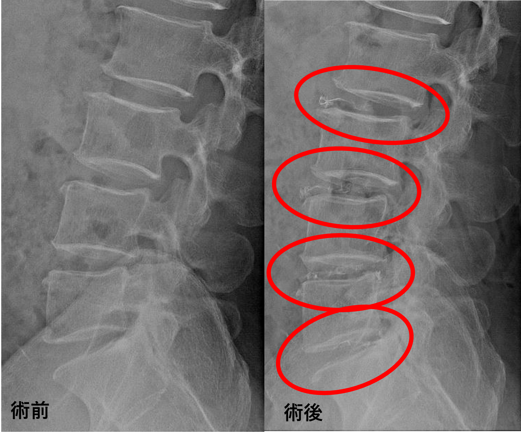 患者様と相談の元、L2/3、3/4、4/5、5/sにセルゲル法を施行