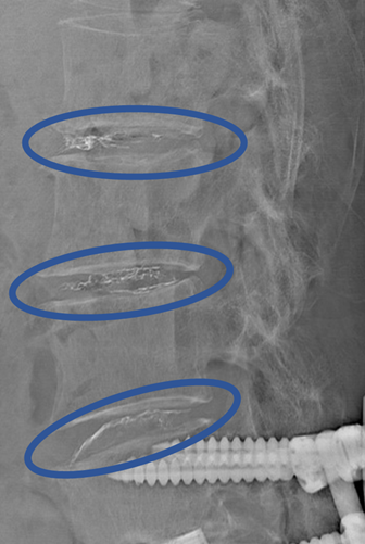 患者様と相談の元、 L1/2、2/3、3/4 にセルゲル法を施行