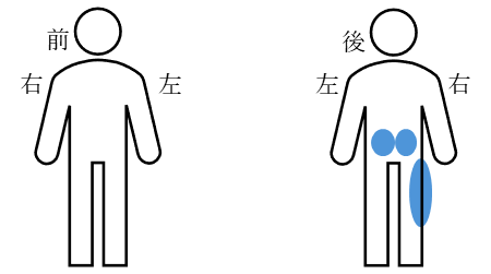 主な痛みの部分-両側腰部、右大腿外側しびれ、両側臀部