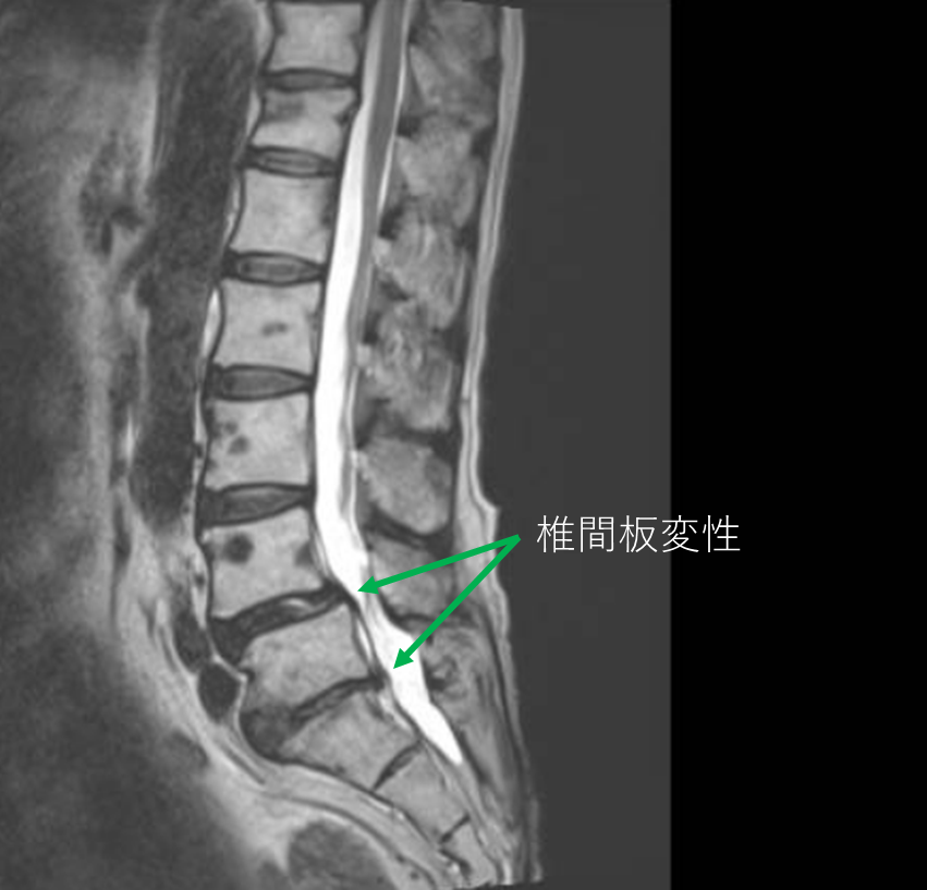 ・L4/5,5/s-椎間板変性を認め、主症状の原因の可能性が高い