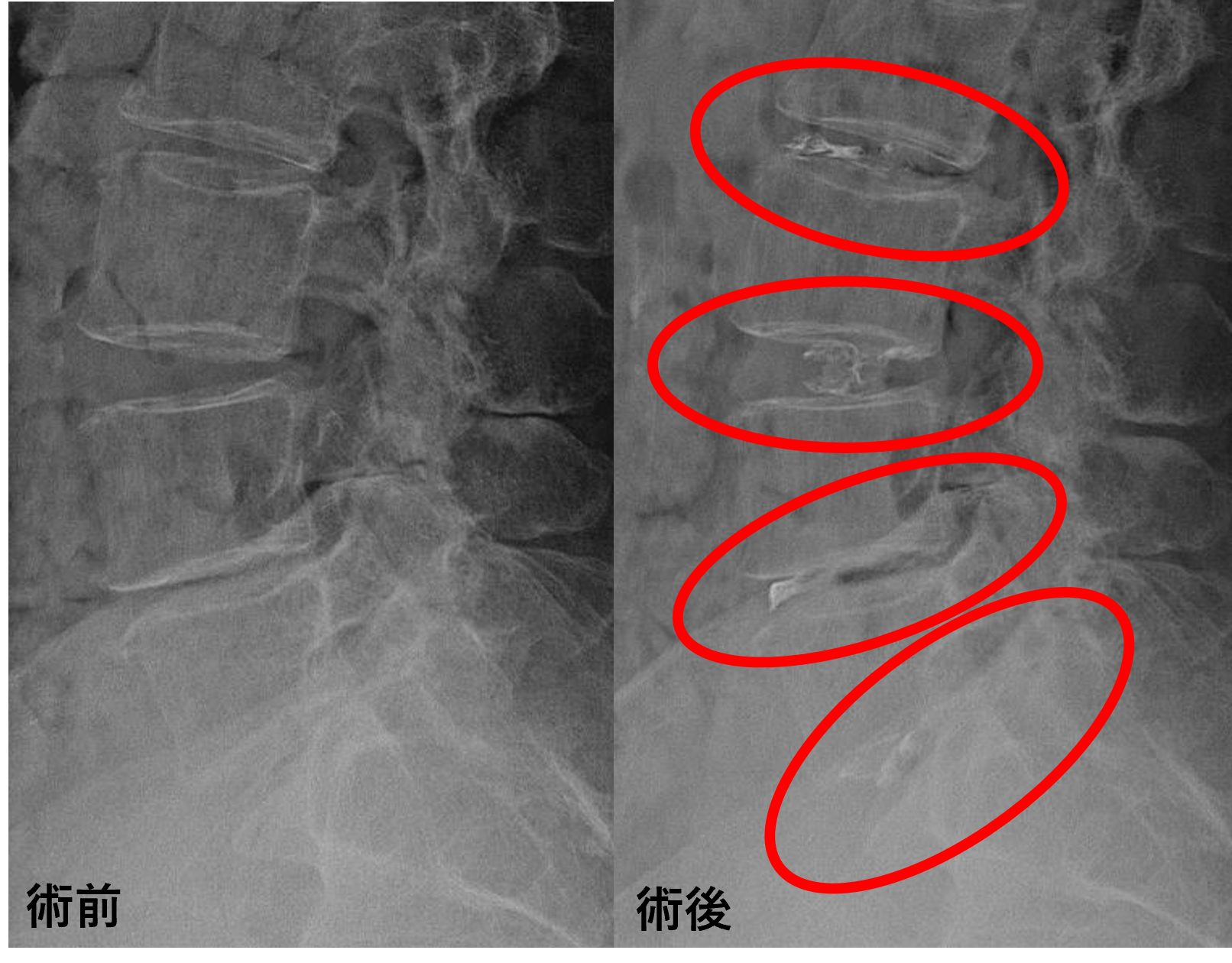 患者様と相談の元、L2/3、3/4、4/5、5/sにセルゲル法を施行