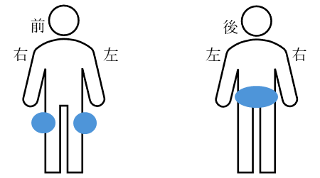 主な痛みの部分-両側腰部、両側大腿外側、両足、両側臀部