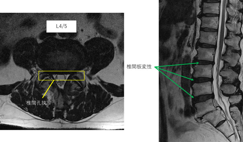 L4/5: 椎間板変性症、両椎間孔狭窄