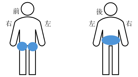 主な痛みの部分-両側腰部痛、両側股関節痛、両側臀部痛