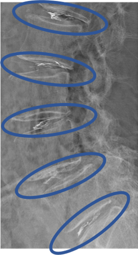患者様と相談の元、 L1/2、2/3、3/4、4/5、5/S にセルゲル法を施行