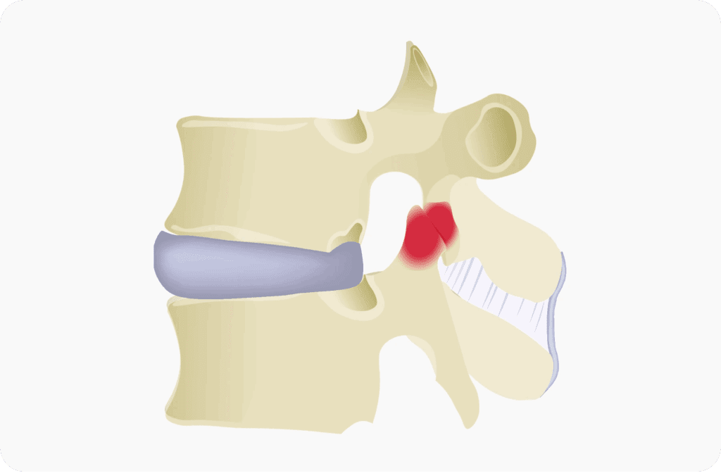 椎間関節症とは、背骨の椎間関節に炎症や変性が生じて痛みが起こる病気です。