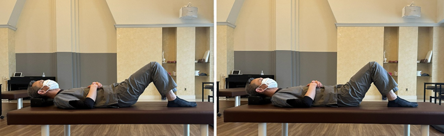 仰向けになり、膝を曲げる